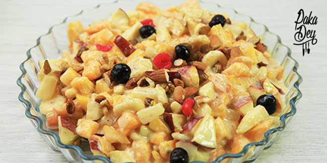Creamy fruit chaat is the basic Pakistani fruit salad with a twist. Seasonal fresh fruits are drizzled with a creamy dressing made with condensed milk and cream sprinkled with dried fresh fruits for garnish. Make sure it’s served cold!