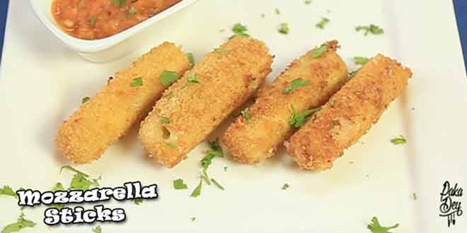 Deep fried cheese. Can there be anything more delicious? Mozzarella sticks is made from mozzarella cheese that has been sliced thinly and coated with flour, egg, and breadcrumbs. It is then deep-fried to reveal gooey cheese inside. Serve with aromatic and delicious marinara sauce made with fresh tomatoes and Italian herbs.